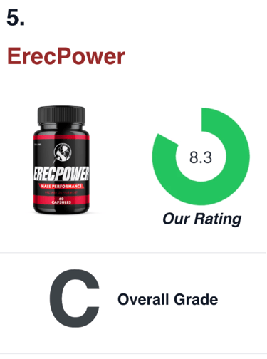 ErecPower claims to support male health, but with no clinical backing, vague ingredients, and a weak reputation, it ranks the lowest on our list. It might offer mild benefits, but with a high price and limited data, it’s hard to trust.